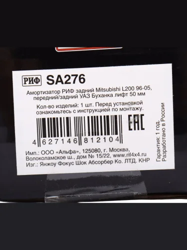 | Наименование | Амортизатор MITSUBISHI L200 (96-05),УАЗ-3151 задний (лифт 50мм) РИФ в Уфе Республике Башкортостан |