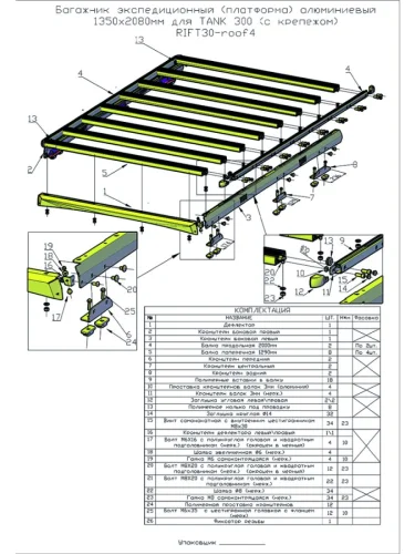 Багажник экспедиционный (платформа) алюминиевый РИФ 1350x2080 мм для TANK 300 (с крепежом)