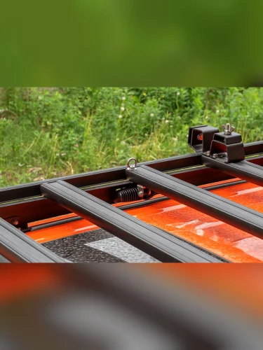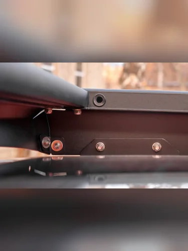 Алюминиевый багажник РИФ – это не просто платформа, на которую можно что-то положить, и притянуть подручными средствами к поперечинам, а полноценная система для крепления не только различных по форме и весу грузов, но и многочисленного дополнительного оборудования и инвентаря. В поперечинах, на всю их длину, есть пазы в которые заводятся крепежные болты кронштейнов или кольца для стяжных крепежных ремней. Таким образом точку крепления можно организовать в любом месте платформы. Толщина стенки паза, в который входит болт крепления, - 3 мм, что позволяет ему держать нагрузку на разрыв до 200 кг! Пазы закрыты специальными упругими пластиковыми защитными лентами, имеющими объемную полусферическую форму. Благодаря этому, груз, размещаемый на платформе, не контактирует с собственно алюминием, а лежит на этих лентах. Таким образом, не царапается порошковая краска багажника и сам груз. Также ленты препятствуют попаданию грязи, мусора и воды в пазы.