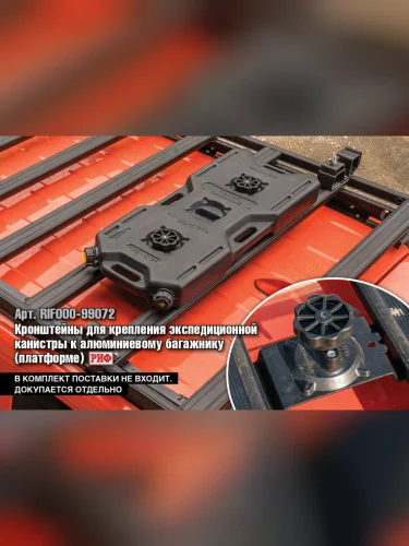 Для нового багажника также выпускаются кронштейны для крепления плоских экспедиционных канистр «Экстрим», канистры размещаются на платформе багажника.