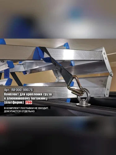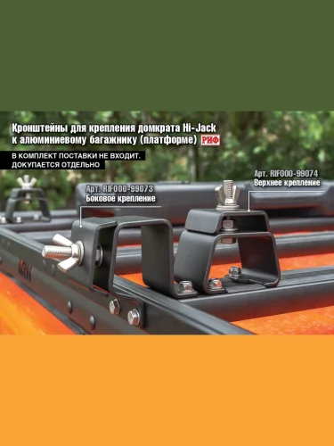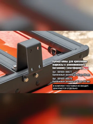 Для данного багажника мы рекомендуем комплект кронштейнов арт. RIF000-99078 (Кронштейны для крепления маркизы (крепежный размер от 61 до 69 мм) к алюминиевому багажнику (платформе) РИФ).