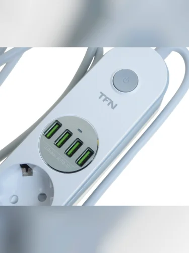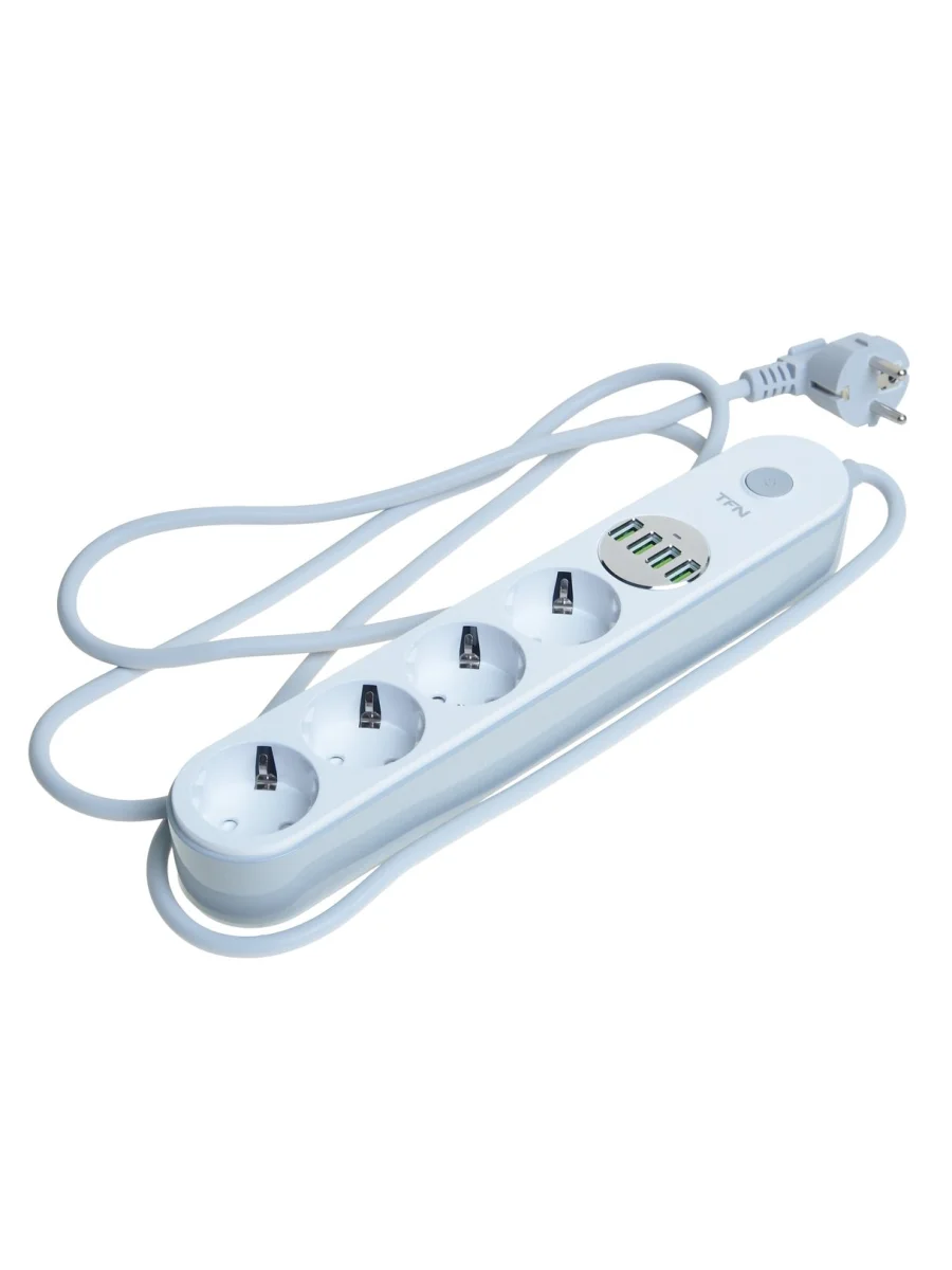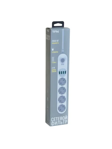 Фильтр сетевой 2м 10А 2500Вт 3 гнезда + 4 USB с заземлением белый TFN в Уфе Республике Башкортостан