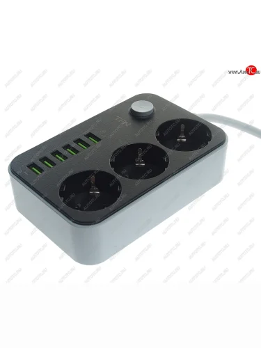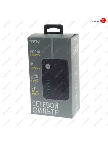 Фильтр сетевой 2м 10А 2500Вт 3 гнезда+ 6 USB с заземлением черный TFN TFN tfn-power7bk в Уфе Республике Башкортостан