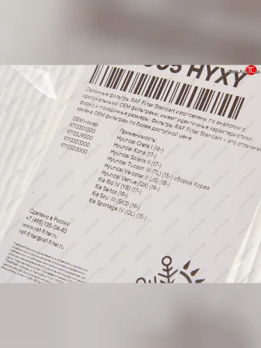 | Наименование | Фильтр воздушный салона HYUNDAI Solaris (17-) Сreta (17-) Tucson (15-) KIA Rio (17-) RAF FILTER RAF FILTER rst005hyxy в Уфе Республике Башкортостан |