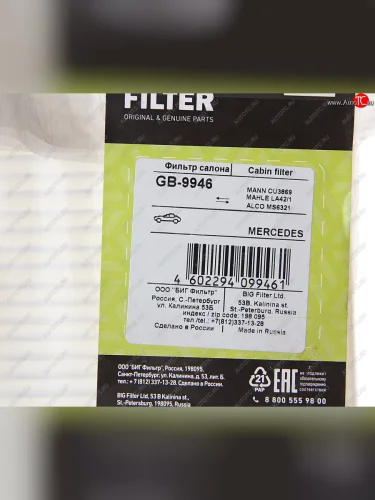 | Наименование | Фильтр воздушный салона MERCEDES Actros (96-02) (380х135х34мм) BIG FILTER BIG FILTER gb-9946 в Уфе Республике Башкортостан |