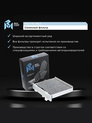 | Наименование | Фильтр воздушный салона MITSUBISHI Pajero угольный MEGAPOWER MEGAPOWER 810-14-063 в Уфе Республике Башкортостан |