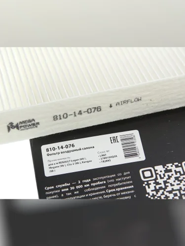 | Наименование | Фильтр воздушный салона RENAULT Logan (04-) Megane (96-) Clio 2 (98-) Kangoo (98-) MEGAPOWER MEGAPOWER 810-14-076 в Уфе Республике Башкортостан |