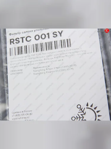 Фильтр воздушный салона SSANGYONG Actyon (10-) угольный RAF FILTER RAF FILTER rstc001sy в Уфе Республике Башкортостан