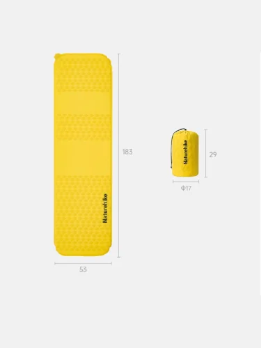 Коврик самонадувающийся Naturehike 183х53х3 5 см желтый brand: Naturehike tsvet: Желтый width mm 2: 170 dlina mm: 320 ves kg 1: 0.7 material: Нейлон vysota mm: 170 в Уфе Республике Башкортостан