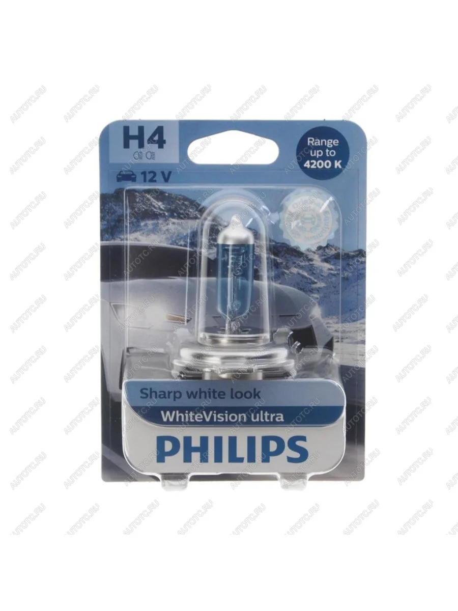 Лампа 12V H4 6055W P43t-38 4200K блистер (1шт.) White Vision Ultra PHILIPS в Уфе Республике Башкортостан