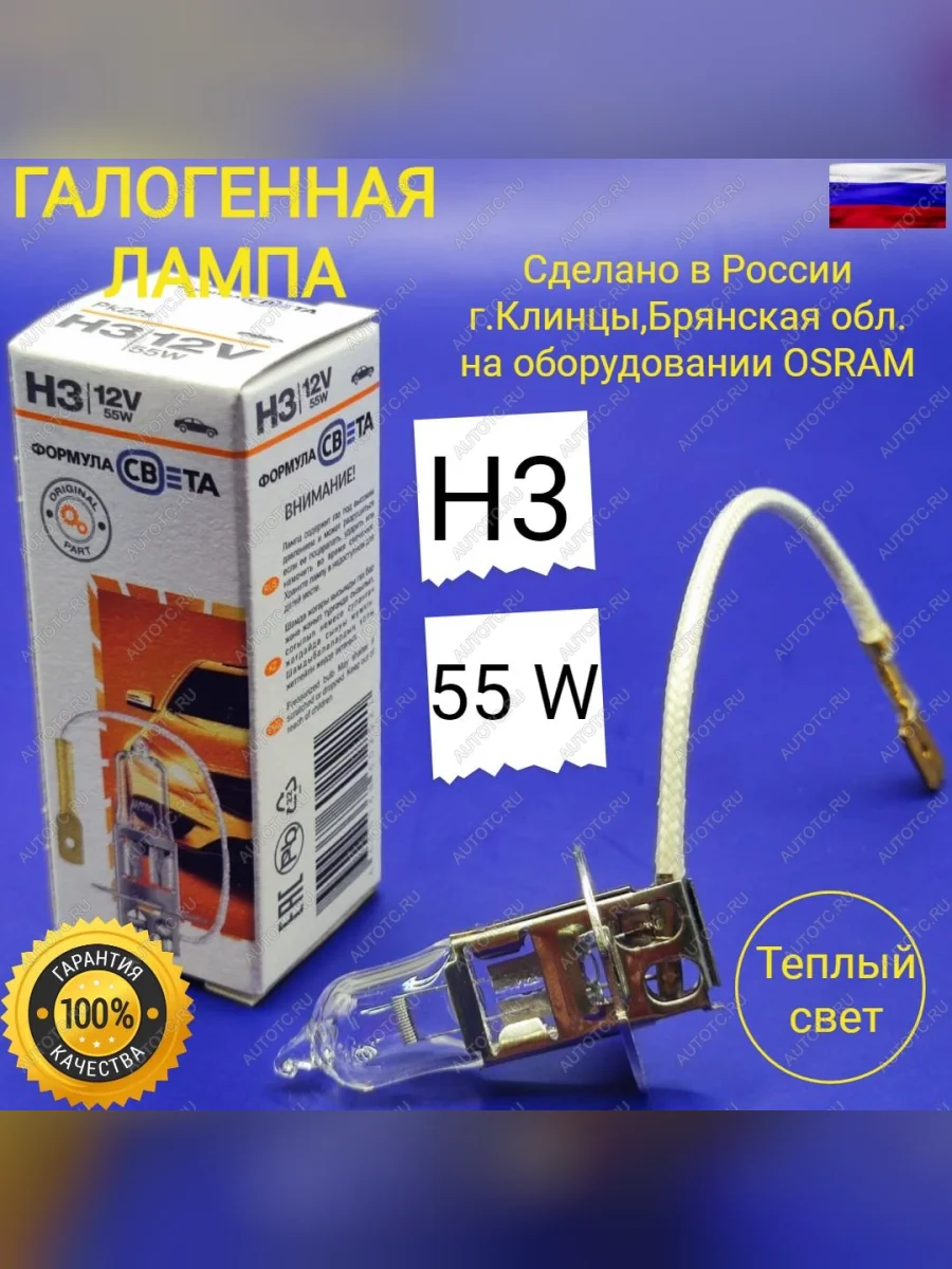 Лампа автомобильная H3 12V 55W PK22S галогенная для легковых автомобилей ФОРМУЛА СВЕТА 4603768602521 в Уфе Республике Башкортостан