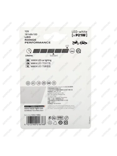 Лампа светодиодная 12V P21W BA15s блистер (2шт.) LED White NARVA NARVA 18148-2бл в Уфе Республике Башкортостан