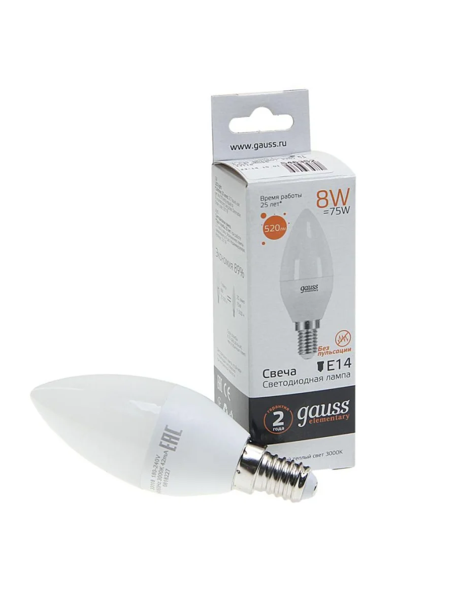Лампа светодиодная E14 C37 8W(70W) 220V теплый GAUSS GAUSS 33118 в Уфе Республике Башкортостан