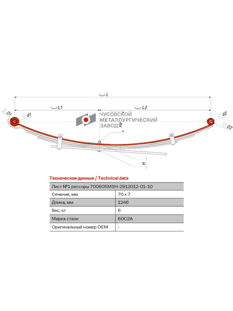 Лист рессоры MITSUBISHI L200 (05-16) задней №1 (5 листов) с втулками L=1246мм ЧМЗ ЧМЗ 700605msh-2912101-01-10 в Уфе Республике Башкортостан