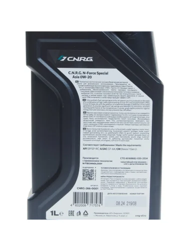 Масло моторное N-Force Asia SPSP-RCGF-6A 0W20 синт.1л CNRG CNRG cnrg-266-0001 в Уфе Республике Башкортостан