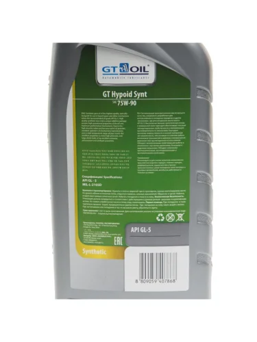 Масло трансмиссионное GT Hypoid GL-4 75W90 Plus синт.1л GT OIL GT OIL 8809059407981 в Уфе Республике Башкортостан