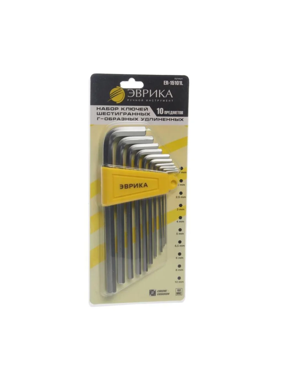 | Наименование | Набор ключей шестигранных 1.5-10мм Г-образных удлиненных 10 предметов ЭВРИКА ЭВРИКА er-15101l в Уфе Республике Башкортостан |