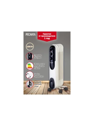 Обогреватель радиатор масляный 1.00кВт (10кв.м) 5 секций белый РЕСАНТА РЕСАНТА 6732 в Уфе Республике Башкортостан