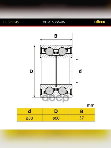 Подшипник 256706 Ступицы Задней Ваз 2108-2112 2170 1118 2190 Передней Ваз 1111 Hofer (Hf 301 045) HOFER арт. HF 301 045 в Уфе Республике Башкортостан