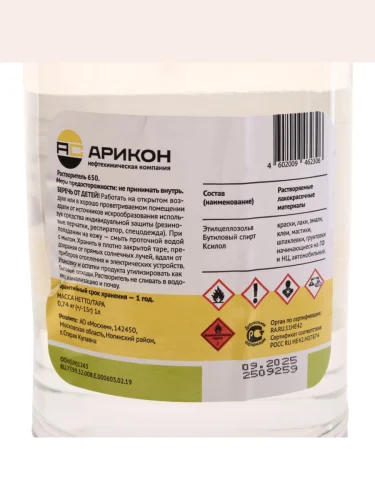 | Наименование | Растворитель 650 1л АРИКОН в Уфе Республике Башкортостан |