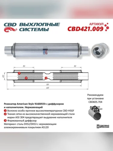 | Наименование | Резонатор с диффузором и наполнителем нержавеющая сталь CBD в Уфе Республике Башкортостан |
