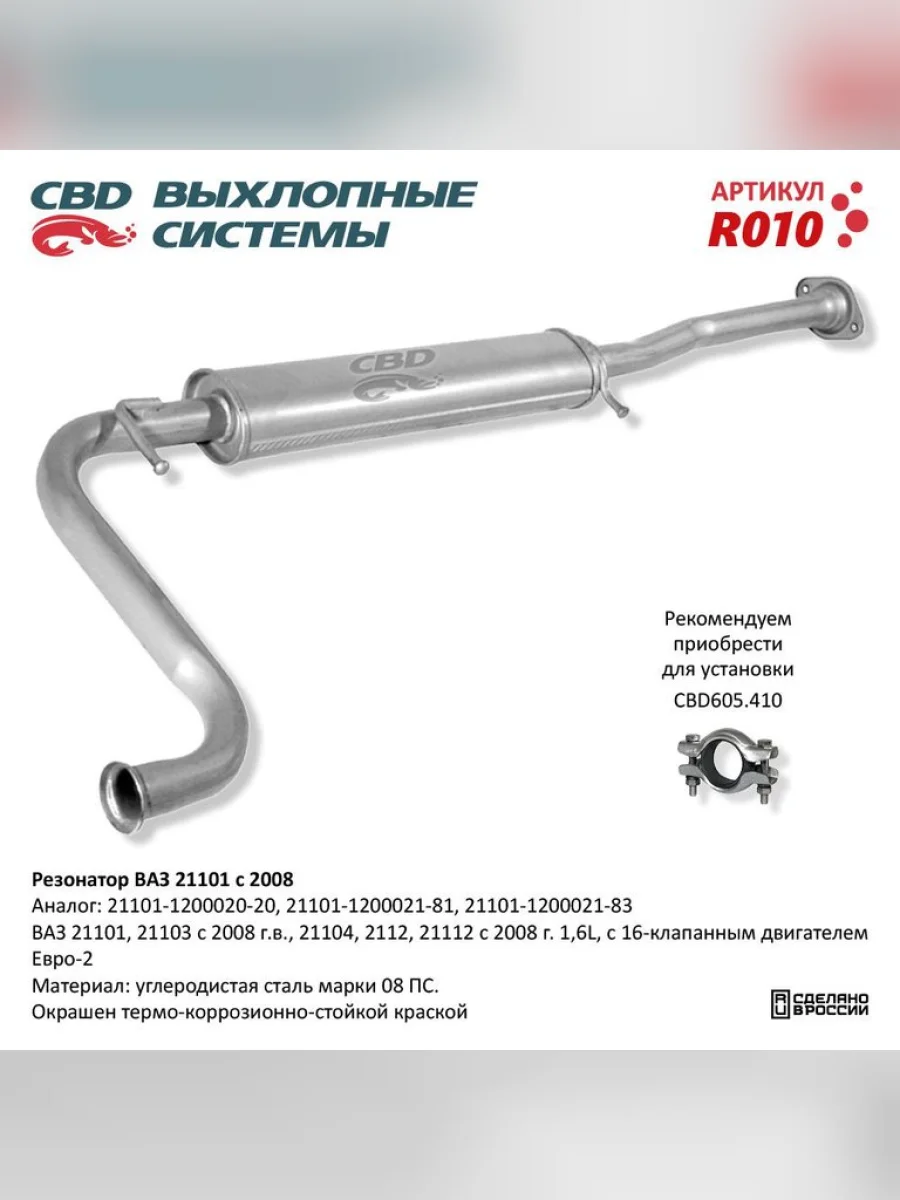 | Наименование | Резонатор ВАЗ-21101 НО CBD в Уфе Республике Башкортостан |