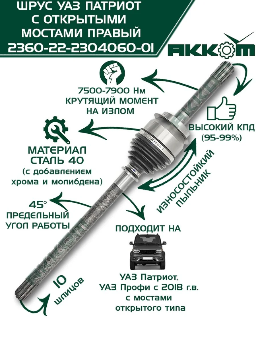 | Наименование | Шарнир кулака поворотного УАЗ Профи правый АККОМ АККОМ 236022-2304060 в Уфе Республике Башкортостан |
