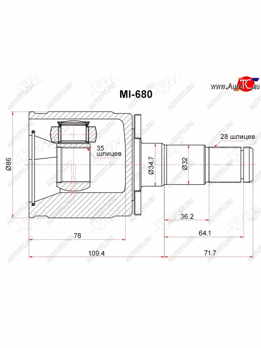 Шрус внутренний LH MITSUBISHI PAJEROMONTERO V8797 SAT MI-680 в Уфе Республике Башкортостан