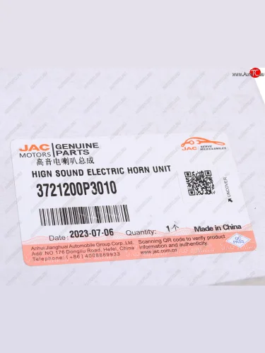 Сигнал звуковой JAC T6,T8Pro (высокий тон) OE JAC 3721200p3010 в Уфе Республике Башкортостан