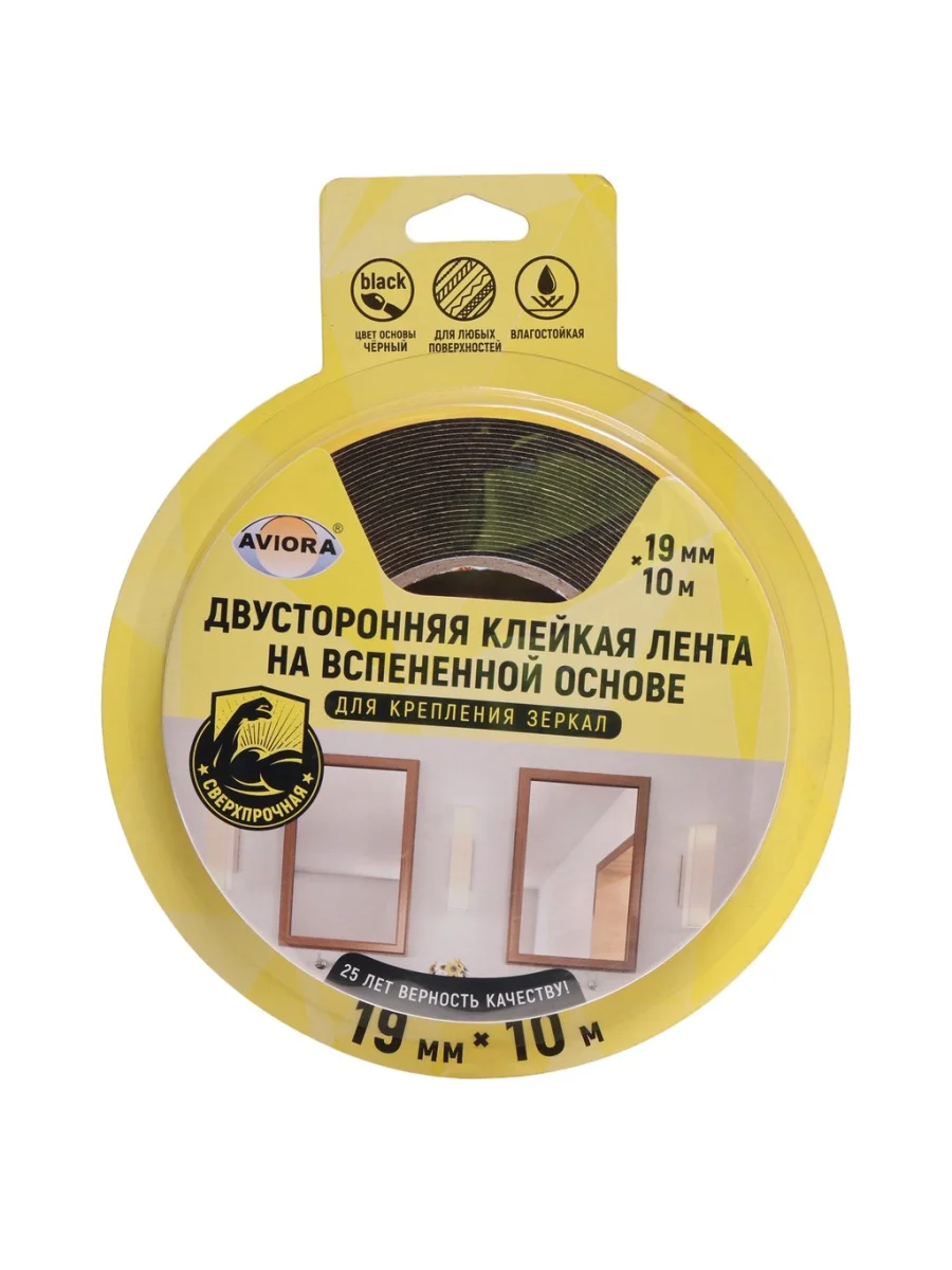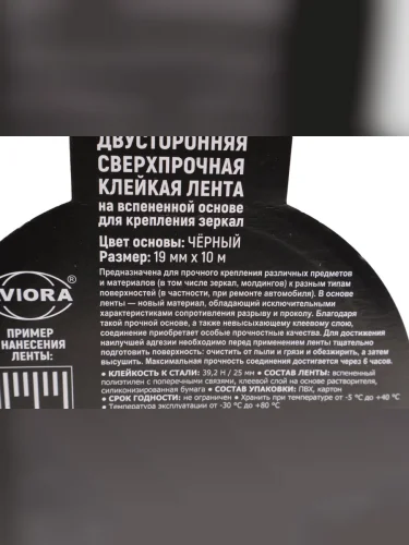 Скотч двусторонний 19x1.2мм 10м черный на вспененой основе для крепления зеркал AVIORA в Уфе Республике Башкортостан