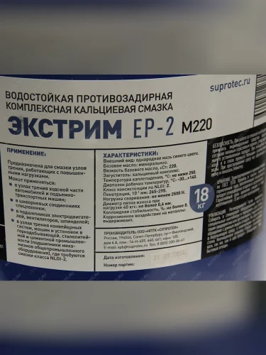 Смазка пластичная ЭКСТРИМ ЕР2 М220 18кг СУПРОТЕК СУПРОТЕК 123810 в Уфе Республике Башкортостан