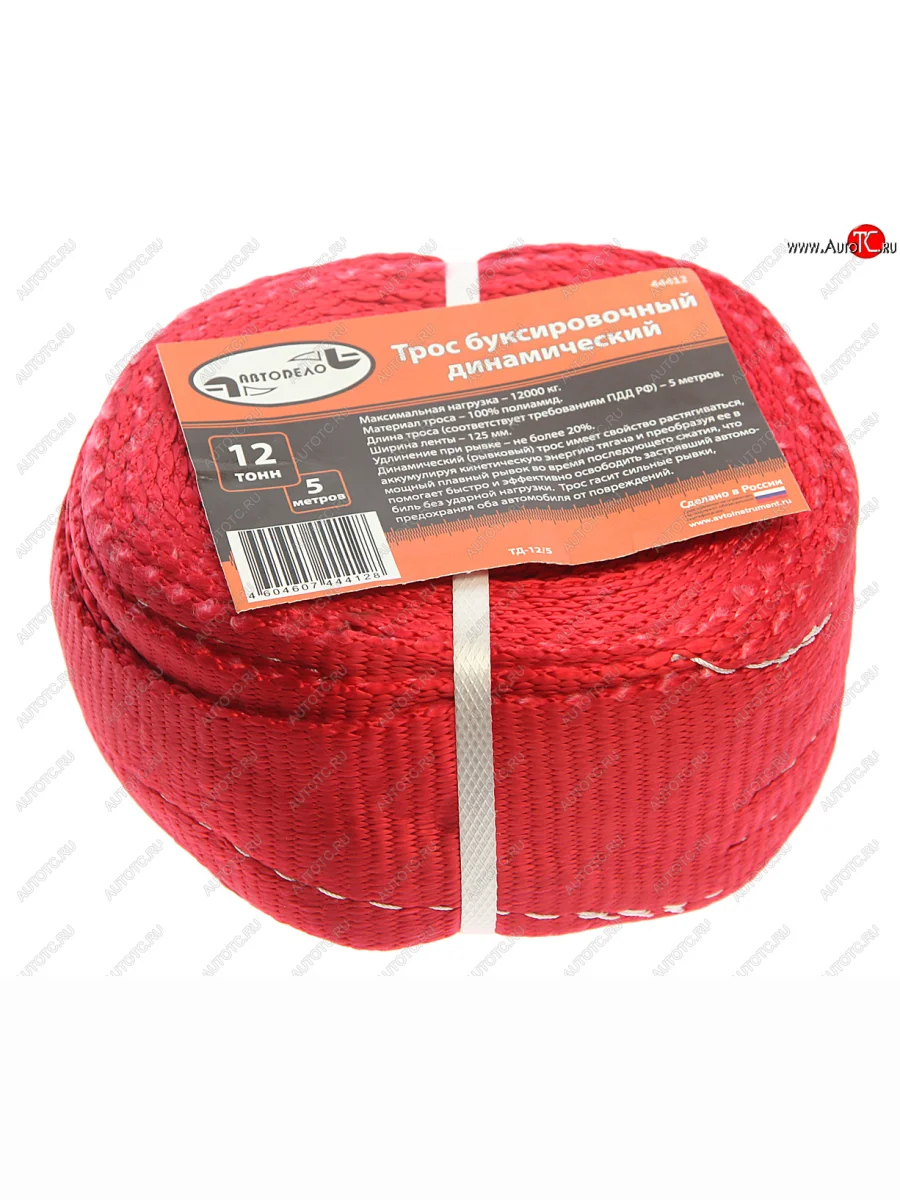 Трос буксировочный 12т 5м ленточный динамический (петля-петля) АВТОДЕЛО АВТОДЕЛО 44412 в Уфе Республике Башкортостан