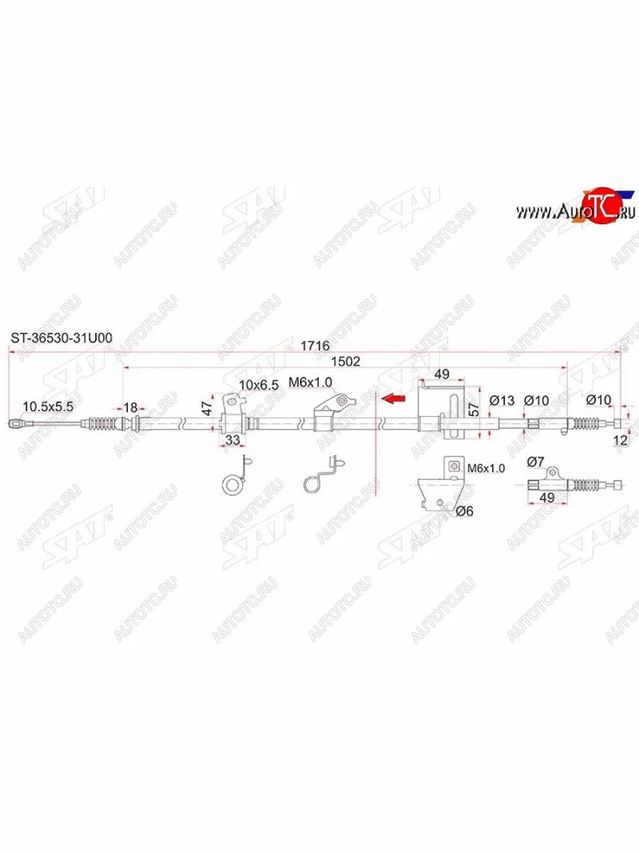 Трос ручника RH SAT Nissan Cefiro (1994-1998) A32 в Уфе Республике Башкортостан