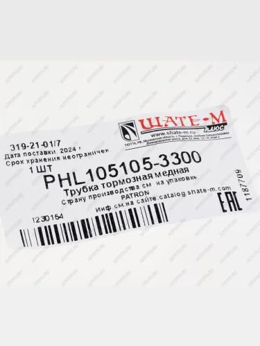| Наименование | Трубка тормозная L=3300мм D=4.75мм медная PATRON PATRON phl105105-3300 в Уфе Республике Башкортостан |