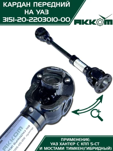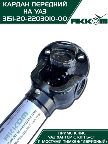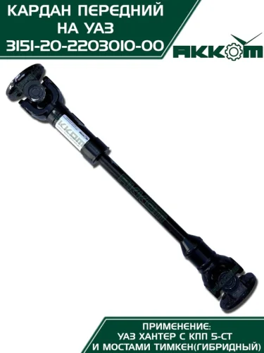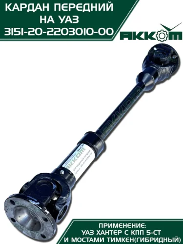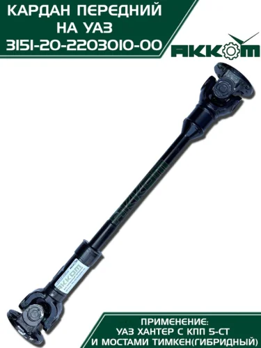 Вал карданный УАЗ-315195 Хантер КПП 5-ти ст. передний (L=651мм) АККОМ АККОМ 31512-2203010 в Уфе Республике Башкортостан