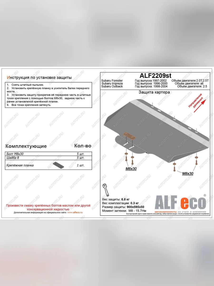 | Наименование | Защита картера (V-2.5) ALFECO (сталь 2 мм) в Уфе Республике Башкортостан |